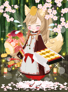 ニコッとタウンのきせかえコーデ記録。打ち出の小槌と山吹色のお菓子をキツネコーデで使ってみました。