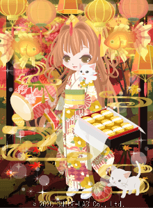 おでかけ草履は交換所で交換して無料ゲット。優しく灯る金魚提灯フレームもイベント特典。秋に染める床もみじはPコインの購入特典。