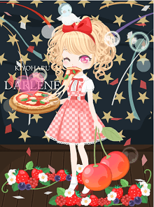 というわけで、私の乏しいアメリカのイメージから、アメリカ→星条旗→ホームパーティ→ピザというような連想ゲームを経てできたきせかえコーデがこちらです。